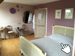 Décorée dans un style classique Louis XV avec des roses comme accessoire. Petit hall vers une grande SDB avec baignoire.